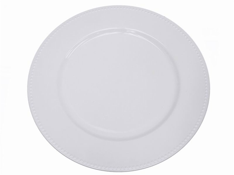 13″ White Beaded Charger Plate