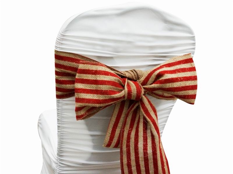 5pc x Stripe Rustic Burlap Chair Sash – Natural Tone w Red