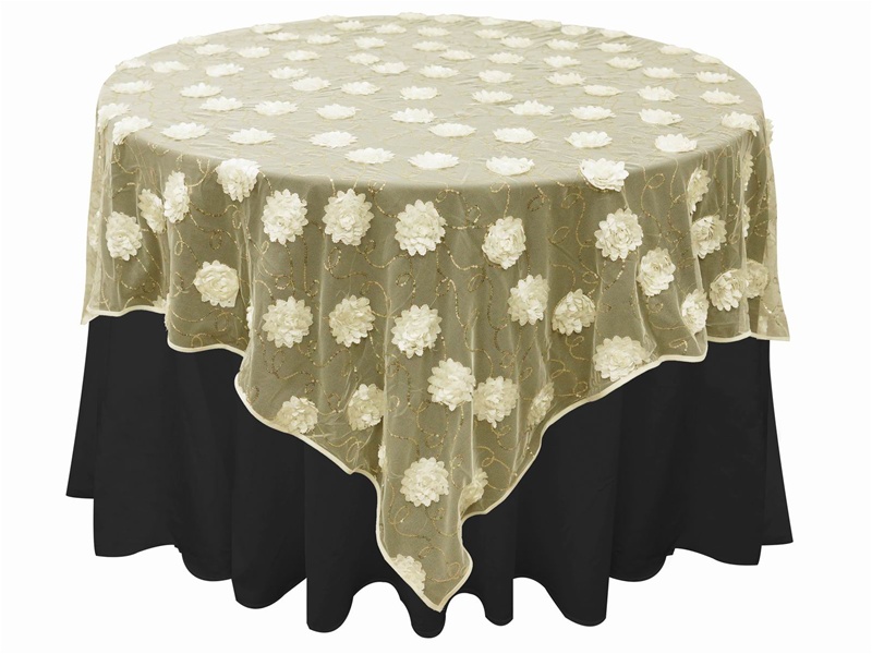 72″x72″ Fiores & Sequins & Lace Overlay – Ivory