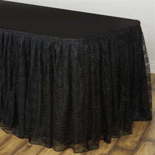Black Dual Layer Lace Polyester Table Skirt 17′