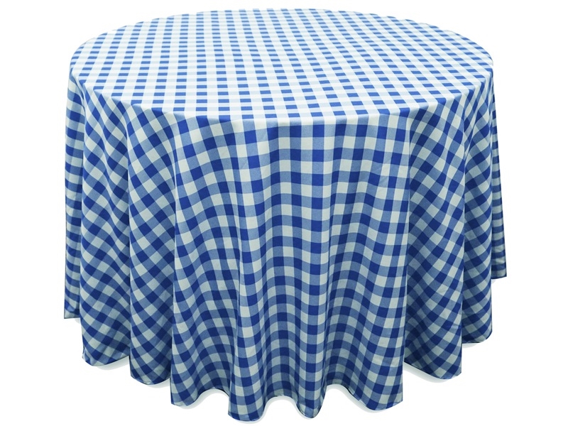 Perfect Picnic Inspired Blue White Checkered 108″ Round Polyester Tablecloths
