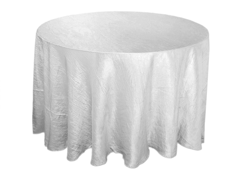 White 117″ Crinkle Taffeta Round Tablecloth